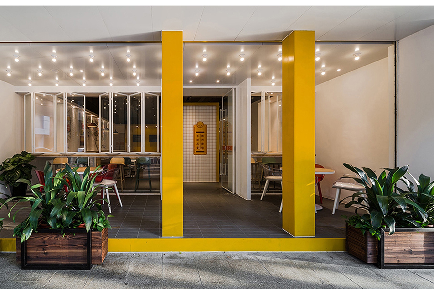 談起香港美食代表,首先會(huì)想到的肯定是茶餐廳,儼然是港式飲食文化的象征和社會(huì)縮影。 旺角雞仔面來(lái)源于香港,它的前身是旺角的一間港式茶餐廳,而旺角屬于全球人口密度最高的地區(qū),人多的地方,美食自然會(huì)多。 旺角雞仔面經(jīng)過(guò)品牌升級(jí)、包裝后首次進(jìn)駐中山市場(chǎng)。旺角雞仔面除了引進(jìn)港式經(jīng)典美食,特首雞皇飯、菠蘿油、絲襪奶茶等等,一應(yīng)俱全。 可以說(shuō)產(chǎn)品結(jié)構(gòu)非常豐富,全面滿足不同時(shí)間段的產(chǎn)品需求。讓消費(fèi)者不用跑去香港,也能吃到最正宗的香港美食。 香港本地茶餐廳的特點(diǎn)在于出品速度快,服務(wù)人員手腳麻利,一杯凍檸茶下完單后就立馬送上桌,而一碗云吞面出品幾乎時(shí)間不超過(guò)三分鐘,吃完自行到前臺(tái)買單,基本是吃完起身就需要離店的茶餐廳,更像是一個(gè)飯?zhí)茫惺懿坏街艿胶唾N心的服務(wù),但這是香港茶餐廳的文化,也是屬于港人快節(jié)奏的生活方式。 由于文化背景和飲食習(xí)慣的不同,旺角雞仔面在打入中山市場(chǎng)后,為了能更好服務(wù)中山地區(qū)的消費(fèi)者,更在運(yùn)作結(jié)構(gòu)和服務(wù)流程上做了相應(yīng)的本地化處理,只希望消費(fèi)者在能品嘗到最正宗港式美食的同時(shí)又能感受暖心的服務(wù)。 無(wú)論是過(guò)去還是現(xiàn)在,香港茶餐廳先是為香港人解決快節(jié)奏生活的痛點(diǎn),其次才是美食體現(xiàn)。因此導(dǎo)致香港市面上現(xiàn)有的茶餐廳普遍空間壓迫,環(huán)境比較“生活氣息”,而這樣的體驗(yàn)感是遠(yuǎn)遠(yuǎn)不能滿足于中山當(dāng)下的消費(fèi)市場(chǎng)。 所以設(shè)計(jì)師從就餐環(huán)境上,先改變了消費(fèi)者對(duì)港式茶餐廳以往固有的形象。旺角雞仔面設(shè)計(jì)主題區(qū)別于傳統(tǒng)的港式文化,設(shè)計(jì)師提煉街頭港式潮流元素,并在空間中融入。 同時(shí)運(yùn)用品牌主題色和輔助色進(jìn)行對(duì)撞和互補(bǔ),借助色彩輔助空間,提高了舒適度和體驗(yàn)感。旺角雞仔面以這樣一個(gè)全新的形象概念店,展現(xiàn)在消費(fèi)者面前。
